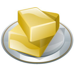 Butter knife, butter, stick of butter, loaf of icecream, peanut butter, stick of butter, chocolate bar icon.